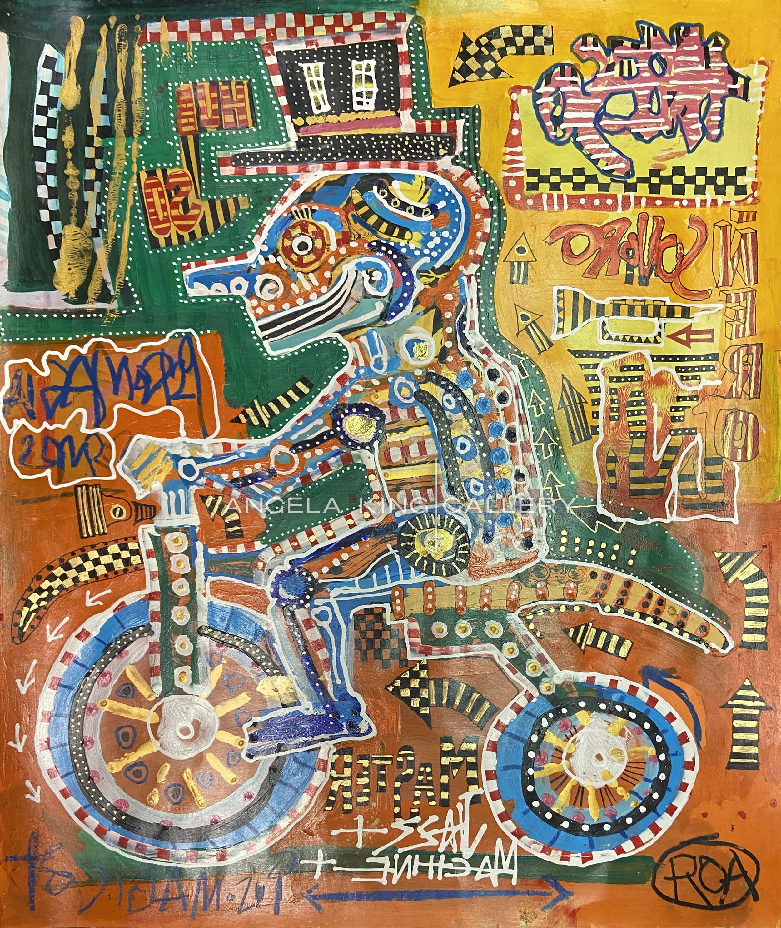 My work is characterized by a contemporary visual language that integrates symbolic, musical, and cultural references through dynamic compositions and a highly saturated color palette. The conceptual framework of my practice parallels the iconography of New Orleans, particularly in the way music, cultural diversity, and layered traditions construct identity. This connection is both aesthetic and historical, finding a point of convergence between the state of Louisiana and the Yucatán Peninsula—regions that have shared centuries of cultural and musical exchange and were formally recognized as sister cities in 1990.