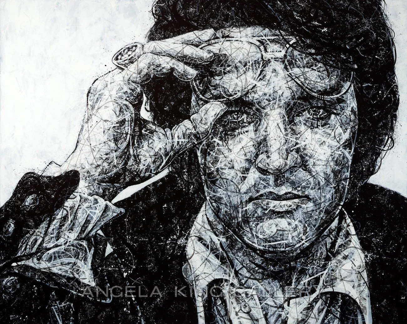 Reichert’s faces and figures are hewn with pallet knife out of passages of black and white. Working without a detailed plan, he paints intuitively, shaping an environment of energy seemingly below the skin of the subject. From a distance, we see a dramatic figure; from close up, we confront a spontaneous orchestration of particles bursting from the canvas. Like many other notable portraitists — Van Gogh, Francis Bacon, Lucian Freud, and Richard Avedon — Reichert has created a technique that gets beneath the surface of his subjects and revitalizes the art form.