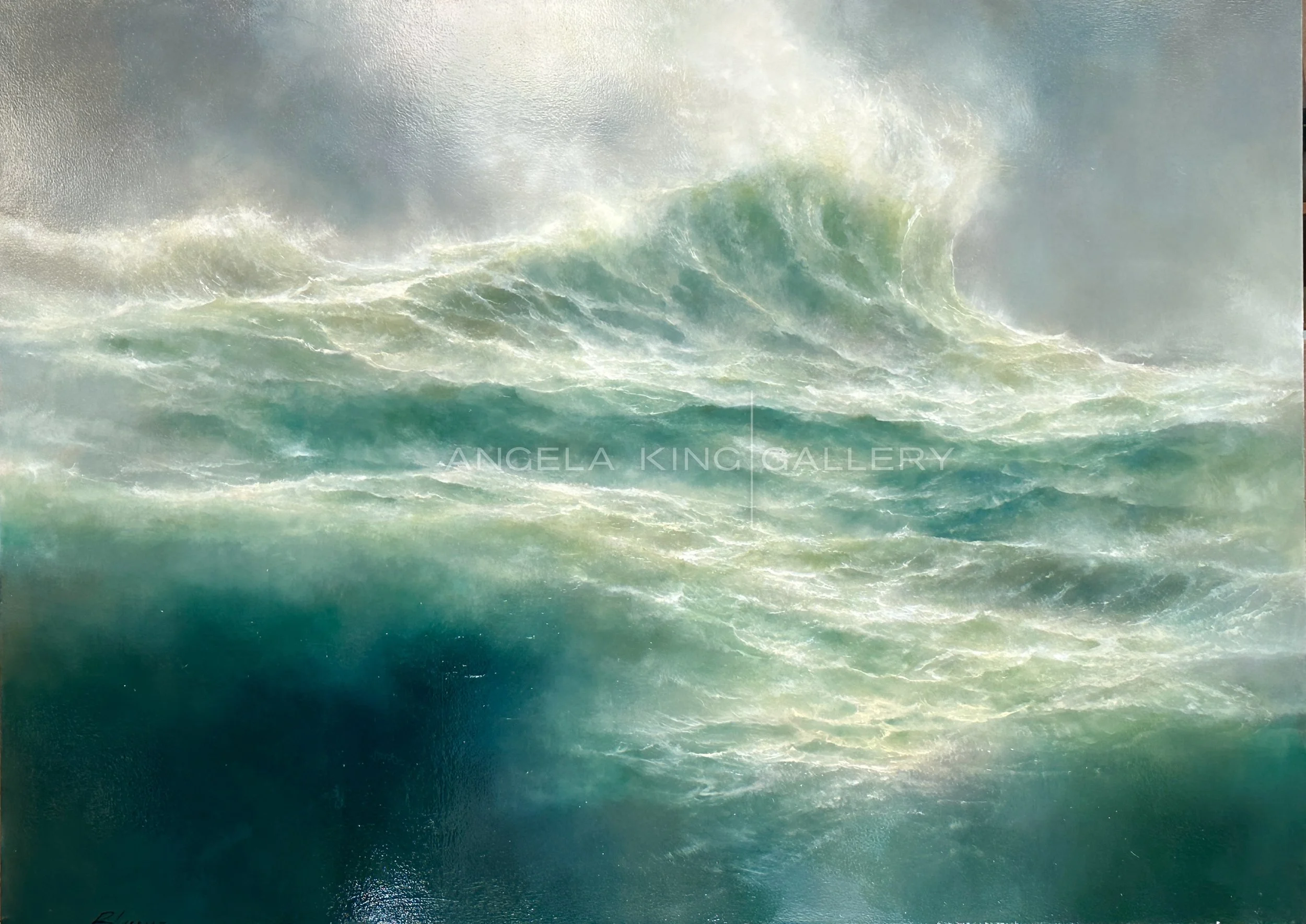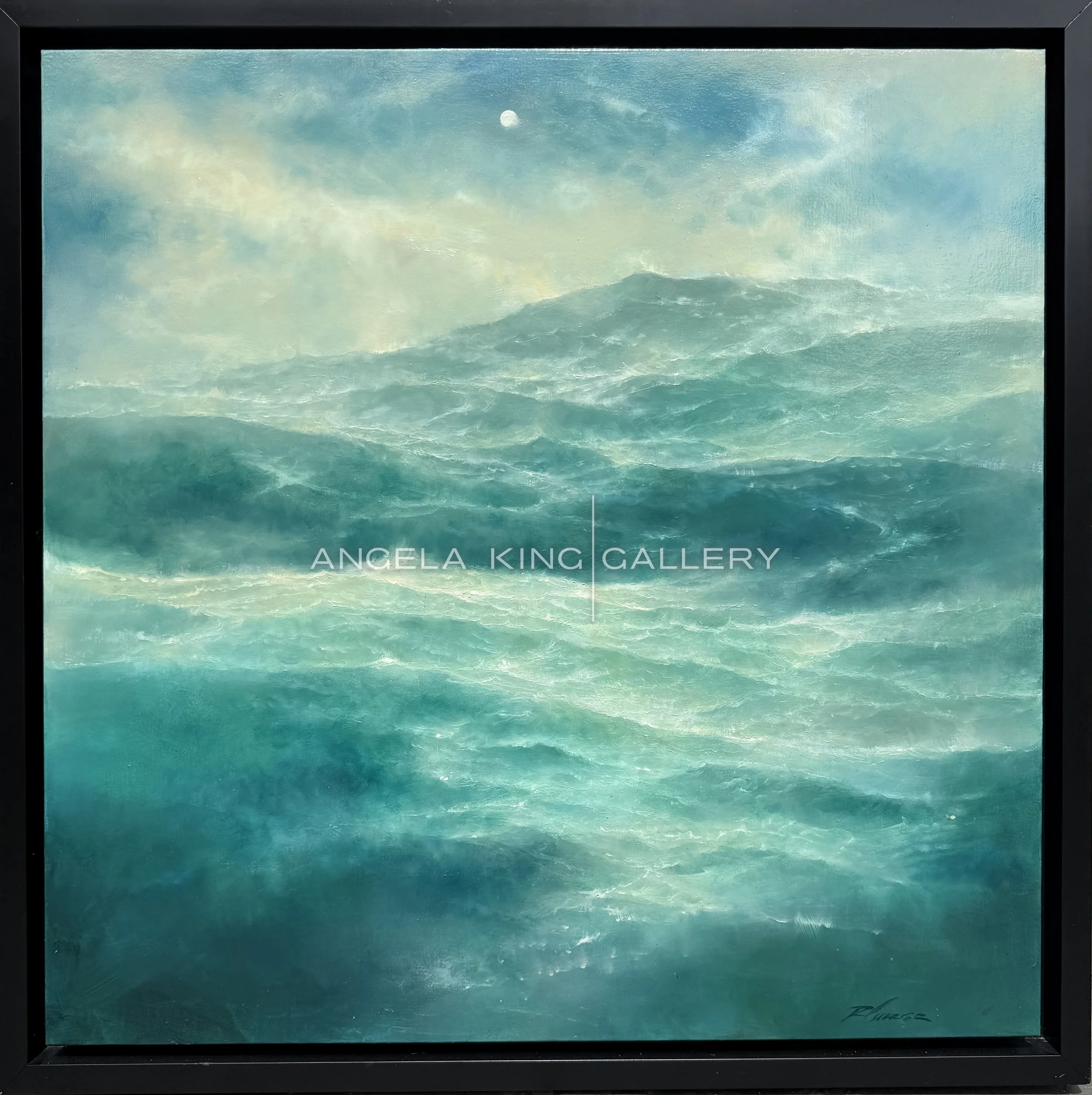 “I have always lived near the ocean and have always been drawn to it as a sailor,” says Currier, whose artistic process is a quest of discovery. “It is the perfect subject for my current mindset. Always in constant motion.” While painting, Currier flows like water through an ever-changing tributary. “I want to go to work every day not really sure how things will start or finish. Although the subjects may be similar, the method changes often and that leads to new results.” The ocean, says Currier, “allows me to be realistic and abstract at the same time. Nothing is more fundamental to life on earth.”