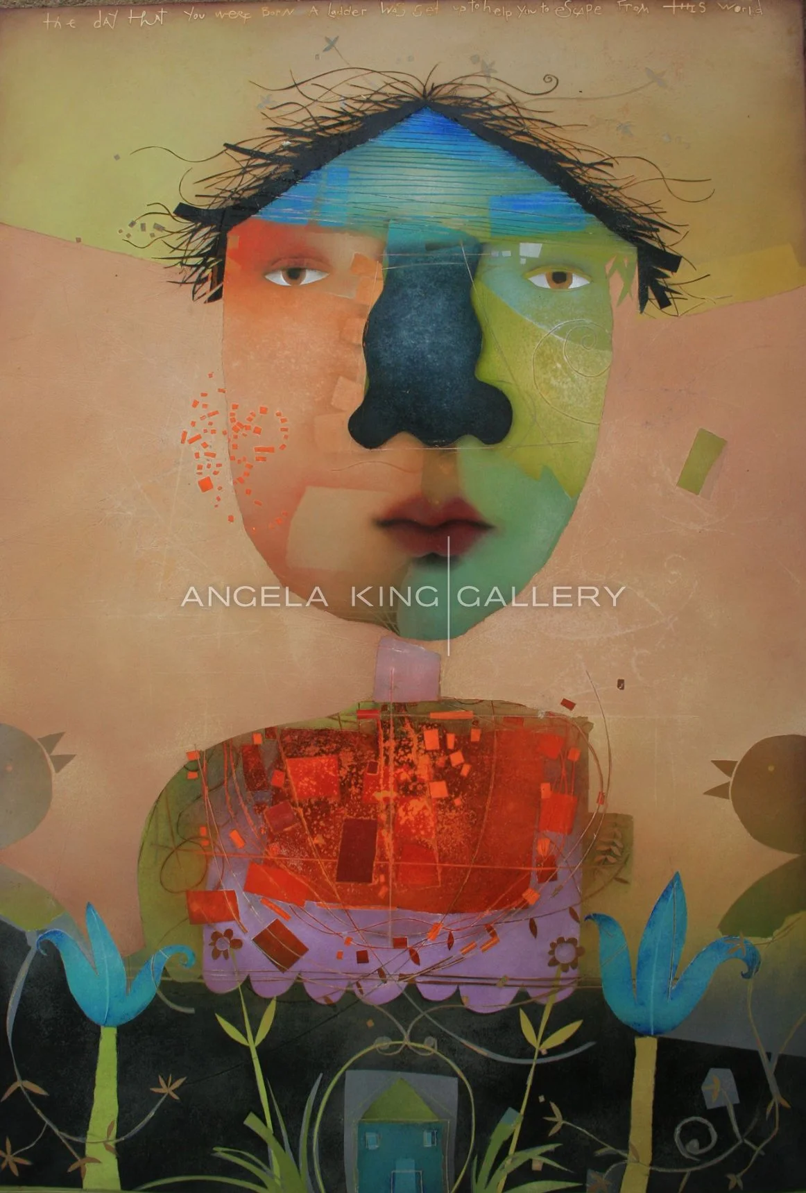 Terri Hallman was born in a small town in Wisconsin in 1962. Hallman had a childhood fascination with the shape of things, reproducing them and then recreating their surfaces. She recalls that drawing was a continuous part of her daily routine. She earned her Bachelor’s Degree in design from the Minneapolis College of Art & Design which she attended from 1986 until 1992. Hallman worked in the design field from 1987 until 1991, winning two International awards for Packaging Design. What is so special about Hallman’s abstract works is that at first they seem primitive, her subjects are simple. Yet upon further observation there are layers of depth and emotion. Her colors are remarkable in that they are super-saturated, and there is a curious textural quality in her pieces that is uncommon.