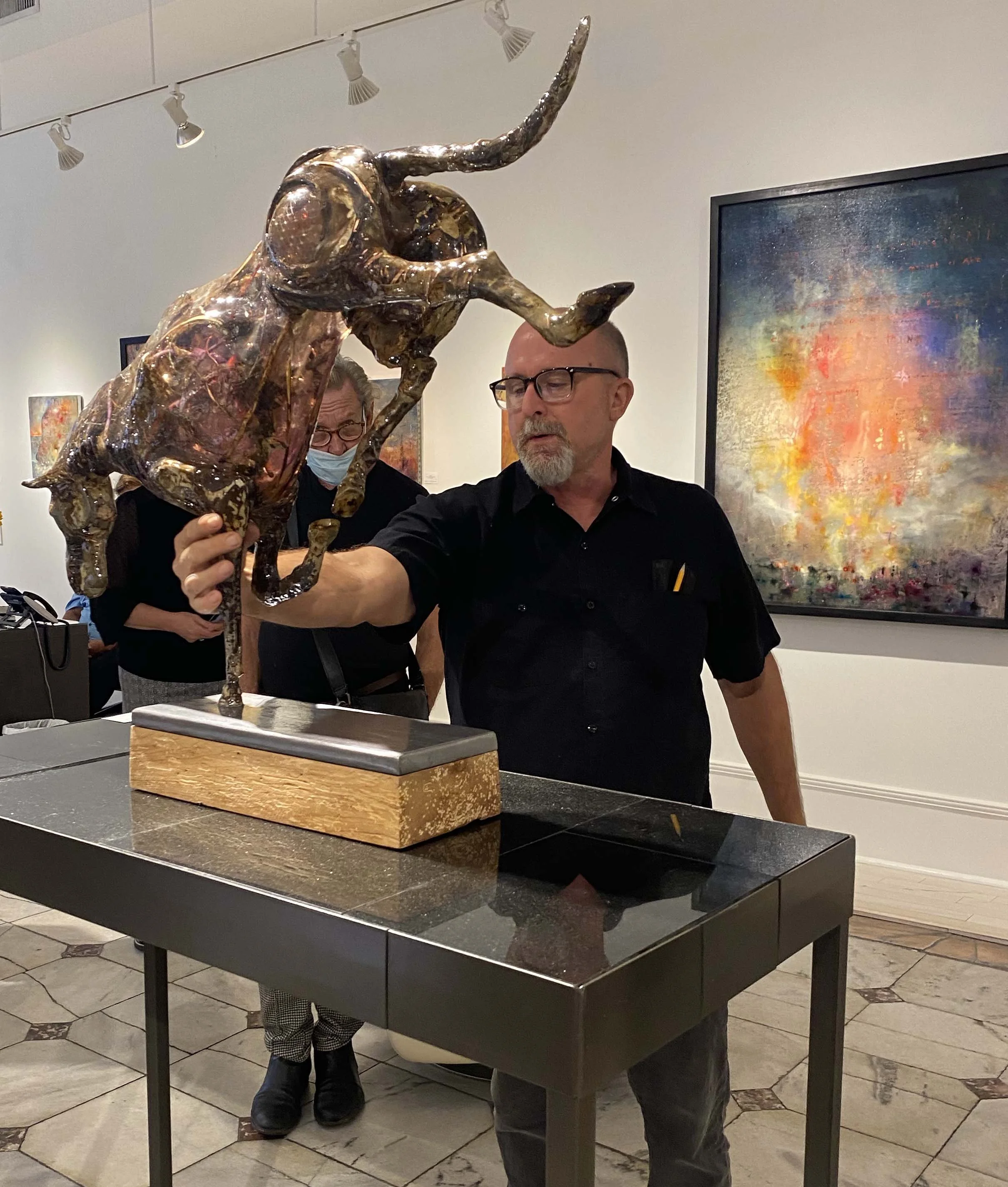Every mixed media work began with an idea or a specific issue. In the process of creation, the idea is humanized through humor and the multi-level expressions of art. “Art does not do anything to solve issues. It does help us see how we relate to the world,” Tony says, “It puts the questions out there for those who are interested.”