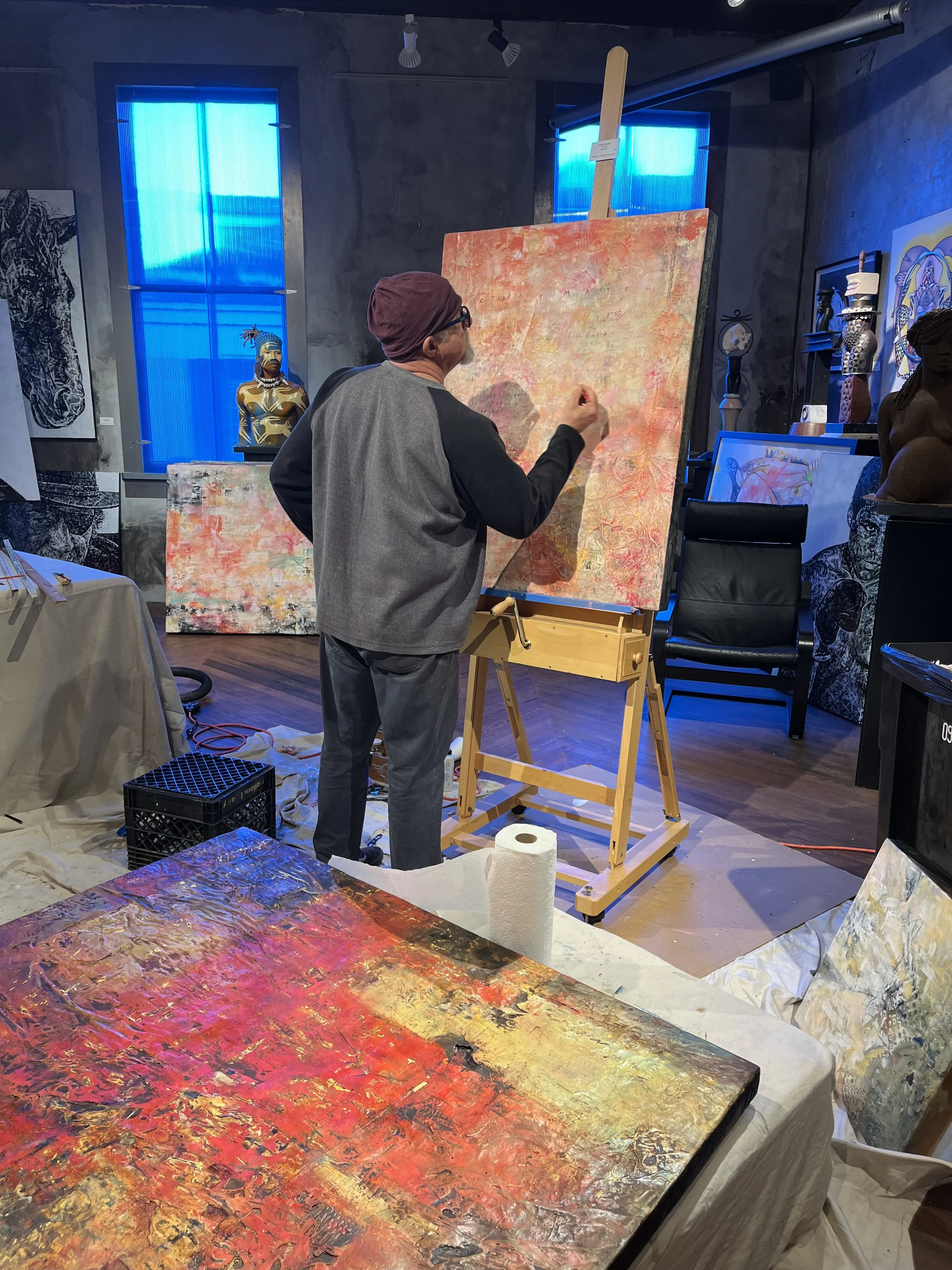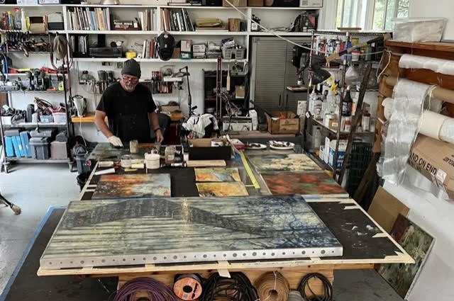 Tony Savoie a versatile artist born in Daytona Beach, Florida, in 1965, has carved a unique niche in the art world through his diverse exploration of mediums and relentless pursuit of self-discovery. Tony's work embodies a captivating blend of experimentation and curiosity. With a portfolio spanning drawing, painting, photography, collage, metal welding, and more, he infuses his pieces with text to probe profound ideas. Inspired by luminaries such as Jack Whitten and Rachel Withering, Tony's art reflects a deep reverence for the natural world and a boundless passion for pushing creative boundaries. Through his innovative use of materials like resin and fiberglass, Tony invites viewers to embark on a journey of discovery, challenging them to see the world afresh and uncover the beauty that unites us all.